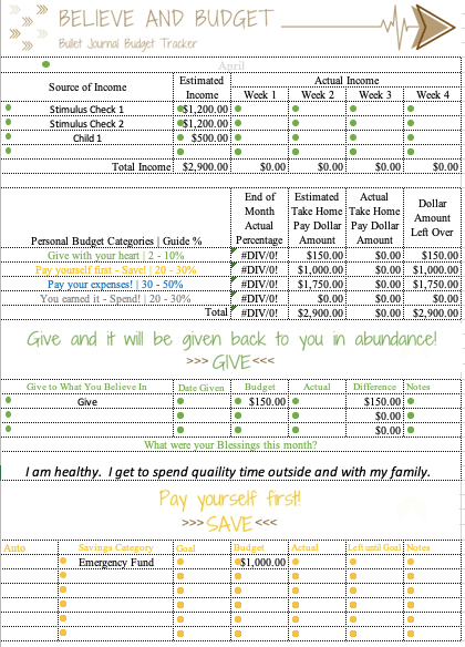 Of course, this will be different for everyone, but it gives you a little layout on how to start your budget with the stimulus check.