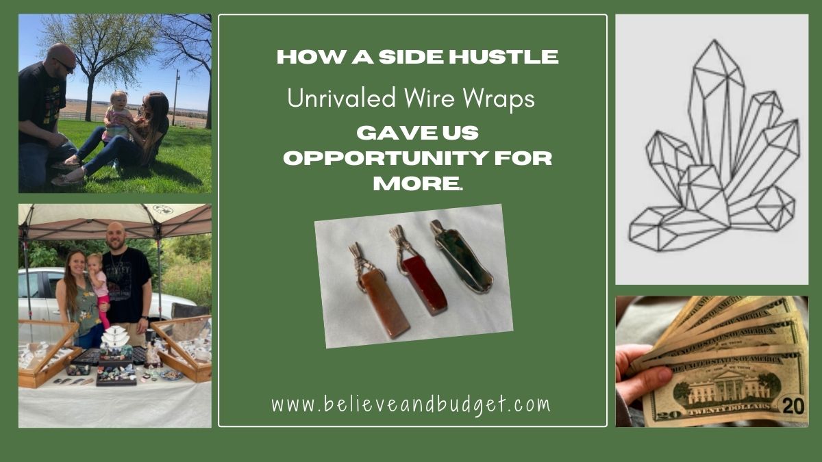 You are stopping by here because you have a side hustle or you are wanting to start a side hustle. I am so glad you decided to join us because a simple side hustle helped us for more opportunity. My husband’s side hustle that helped us, Unrivaled Wire Wraps. Unrivaled Wire Wraps is a business he turned his love of rocks, minerals, and stones into helping people see the beauty of them by creating jewelry. Let us inspire you to take a leap in your side hustle to give you and your family more of what you want.