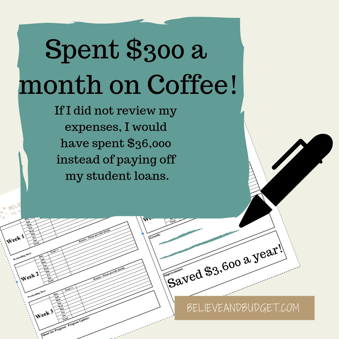 In college, I spent $300 in a MONTH on coffee at Starbucks! Yes, I did. I will admit to it. I used the spending tracker to get myself to calm down on the Starbucks coffee. The first month I only cut $50, the second month I cut $100, and the third month was down to $100 in my budget (ONLY ONE COFFEE A DAY). It is not magic – it takes time to break a habit.