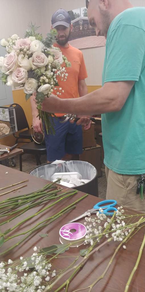 The day before the wedding we put the bouquet together and the boutonnieres.