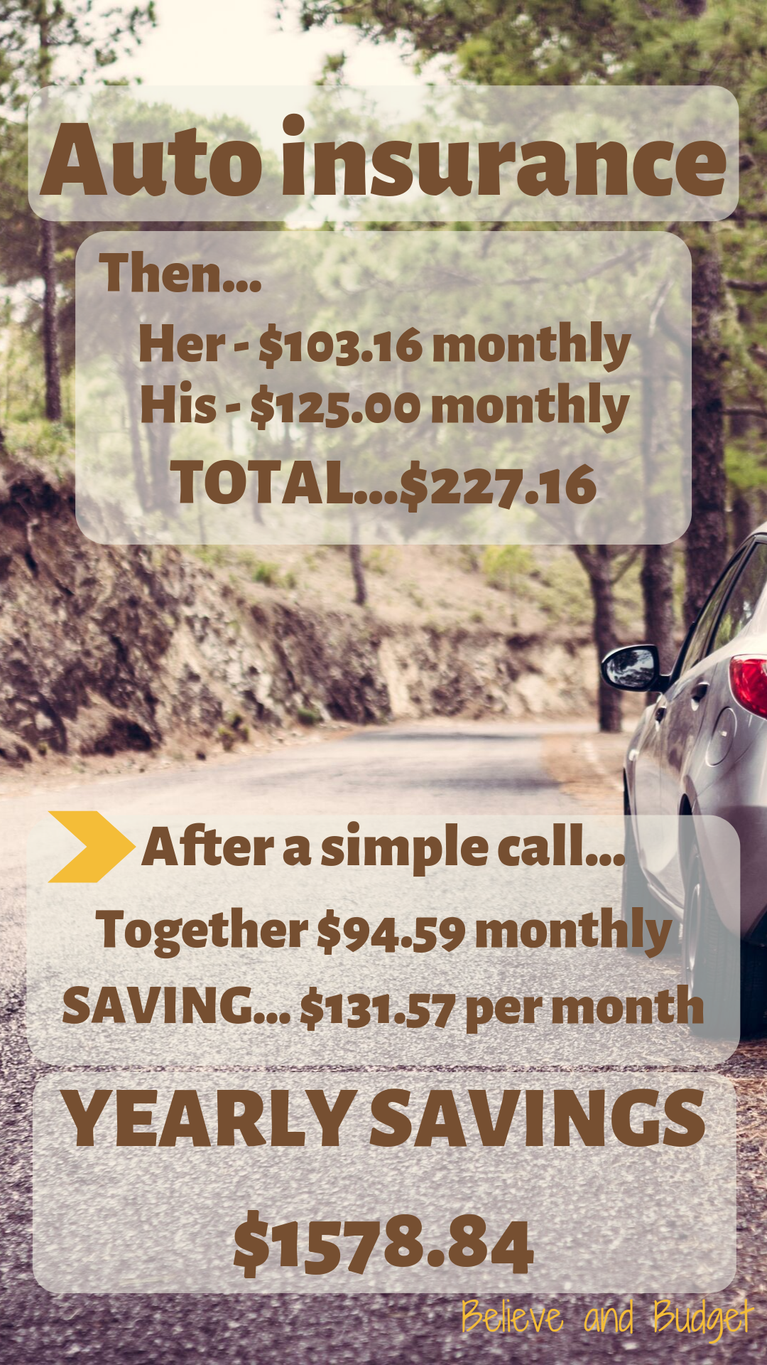 If you have not reevaluated your insurance…try it and see where you can save money!