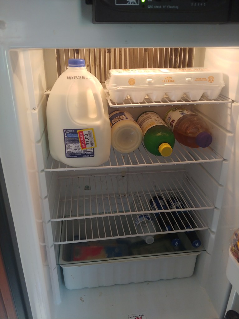 We love not throwing away any food, and this definitely helps us do this by shopping out of our pantry. It comes even easier in our tiny fridge. It usually looks like this when we go shopping (left)