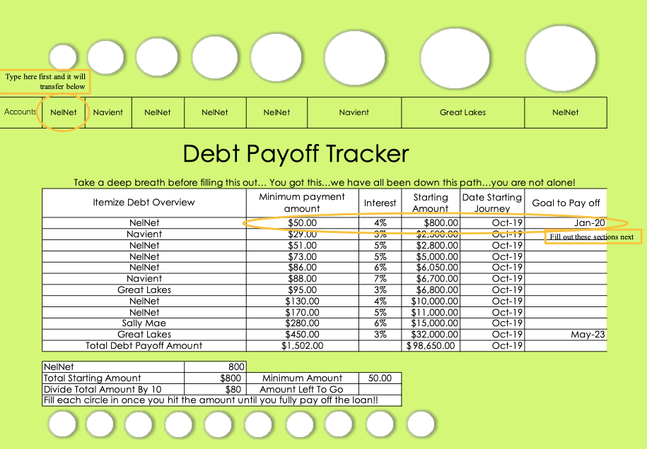 Yes, I said it. Call the loan company each month to add your $400 extra payment. I tell you this because that way you can specifically tell them what “token” you want to pay off. Otherwise, it will take you longer to pay off your loans. We want you to pay them off fast! Fast is the key!