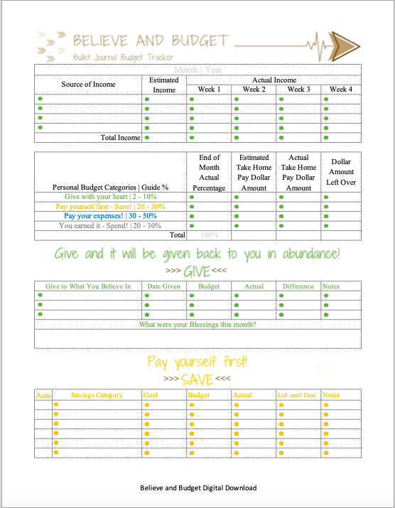 What you get? ✓ Printable Bullet Journal Budget Tracker ✓ Helps with contentment and findin your blessings each month ✓ Help you budget with the frame of giving, saving, and spending. ✓ Will be downloadable within 24 – 48 hours. ✓Nothing is shipped.